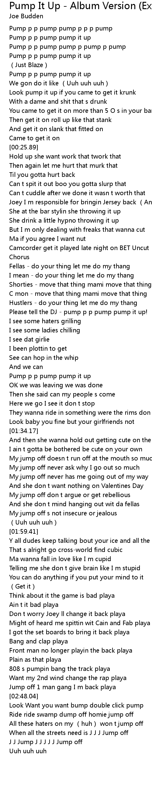 | [01:06.13] | Please tell the DJ - pump p p pump pump it up! |