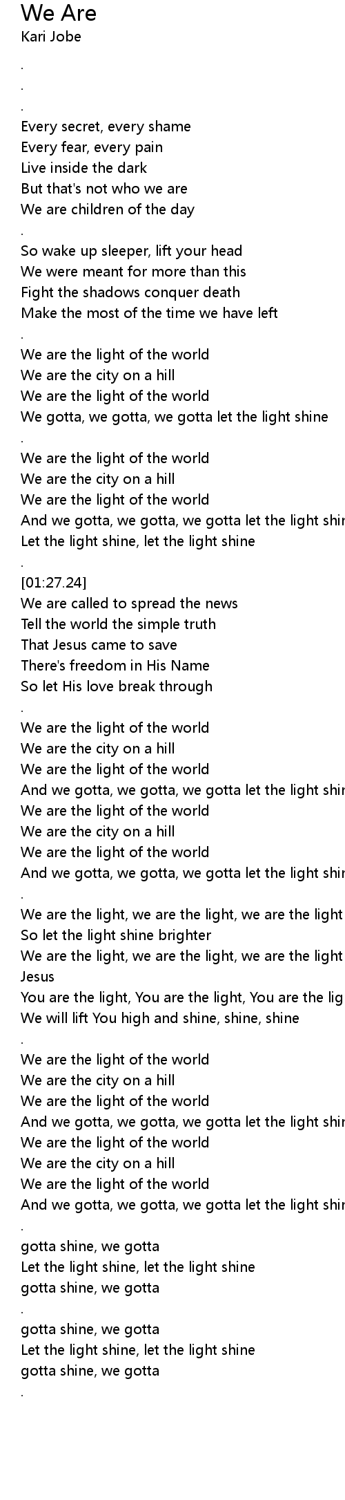 We are the light, we are the light, we are the light |