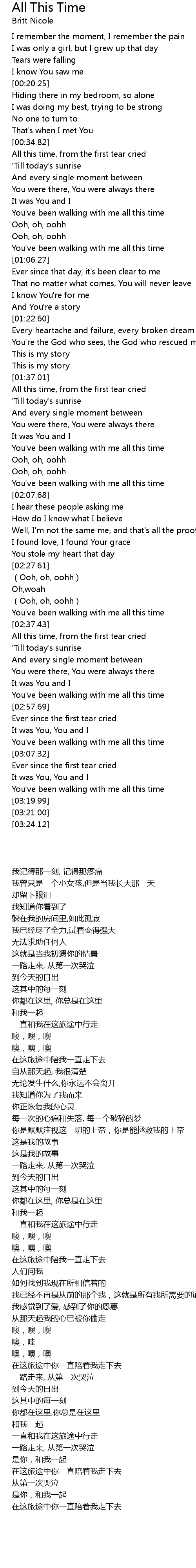 | [03:14.57] | You've been walking with me all this time |