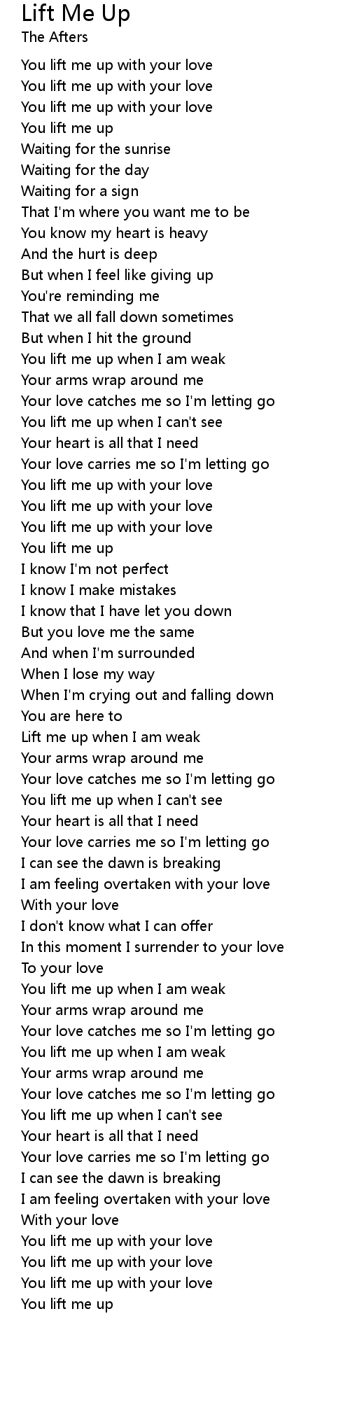Lift me up when I am weak |