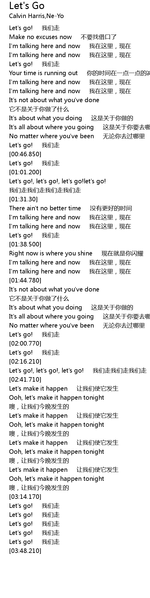 | [03:30.200] | Let's go! 我们走 |