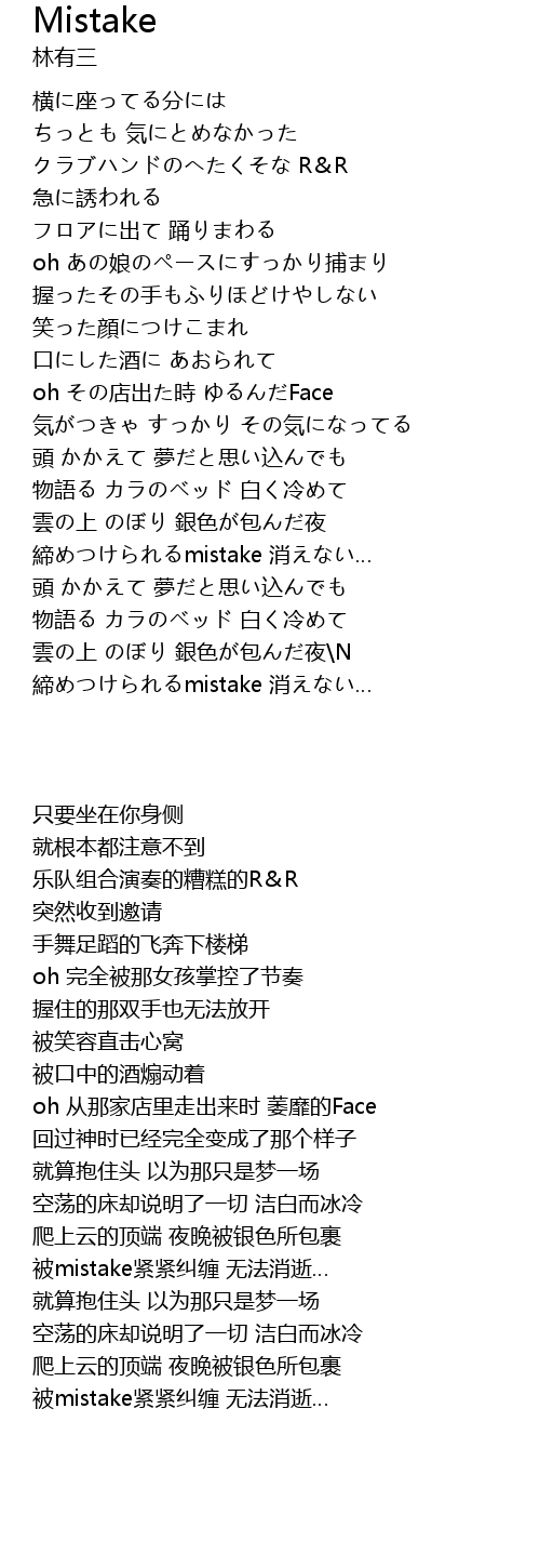 | [02:49.35] | 被mistake紧紧纠缠 无法消逝… |