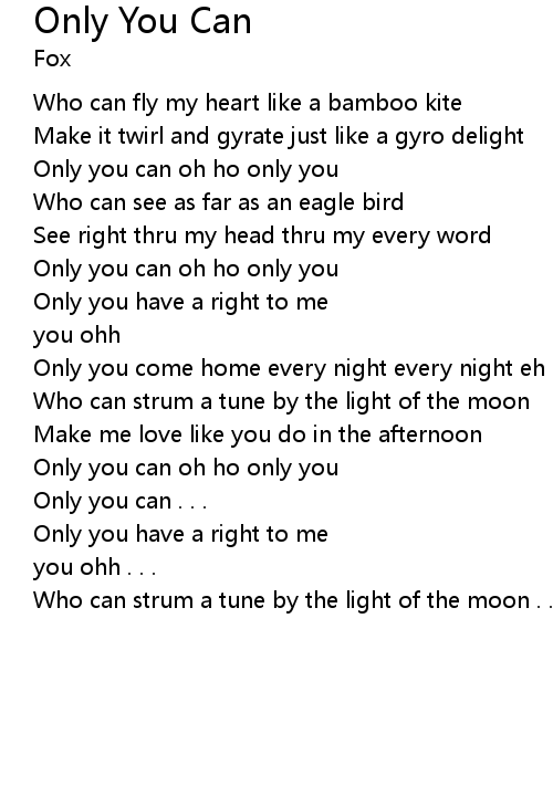 Only you can oh ho only you |