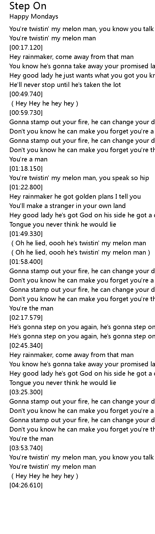 | [01:49.660] | (Oh he lied, oooh he's twistin' my melon man |