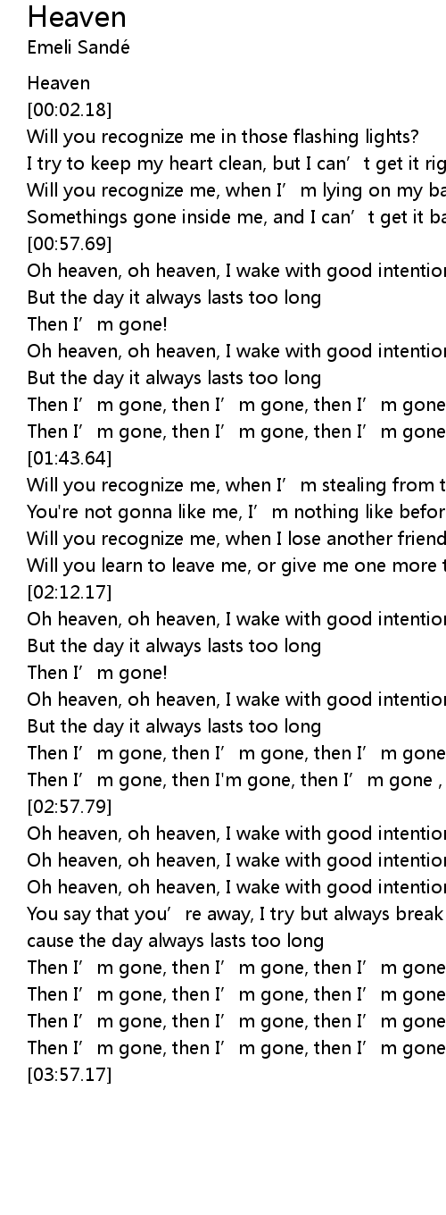 | [03:00.45] | Oh heaven, oh heaven, I wake with good intentions, |