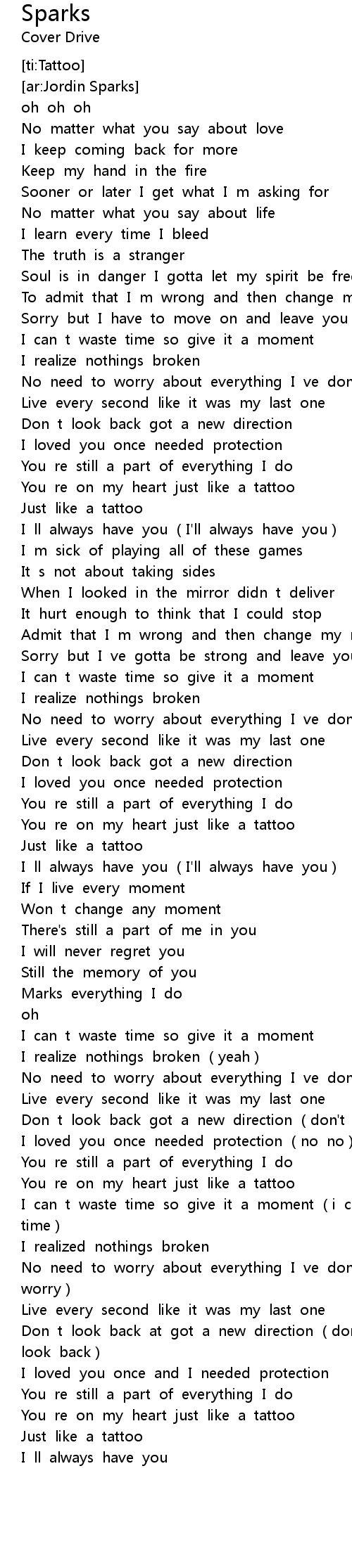 | [03:37.519] | You re on my heart just like a tattoo |