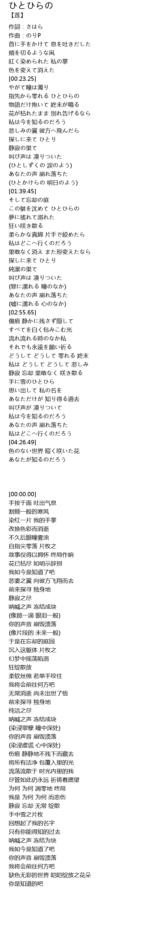 | [00:46.54] | 指先から零れる ひとひらの |