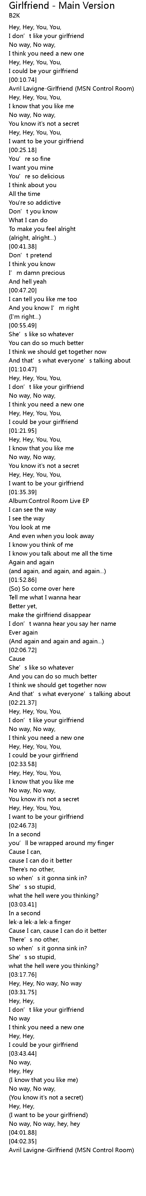 | [04:08.88] | Avril LavigneGirlfriend MSN Control Room |