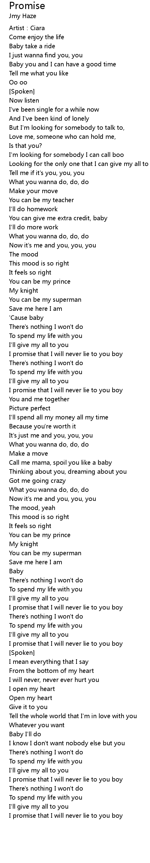 | 歌曲 | Promise |