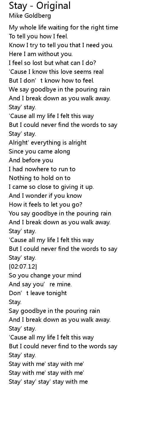 | [03:19.66] | Stay' stay' stay' stay with me |