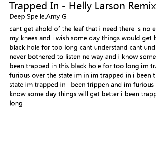cant get ahold of the leaf that i need there is no end to the to streets im on my knees and i wish some day things would get better i been trapped in this black hole for too long cant understand cant understand the word of what u say i never bothered to listen ne way and i know some day things will get better i been trapped in this black hole for too long im trapped in i been trippen im furious over the state im in im trapped in i been trippen im furious over the state im trapped in i been trippen and im furious over the state im in and i know some day things will get better i been trapped in this black hole for too long |