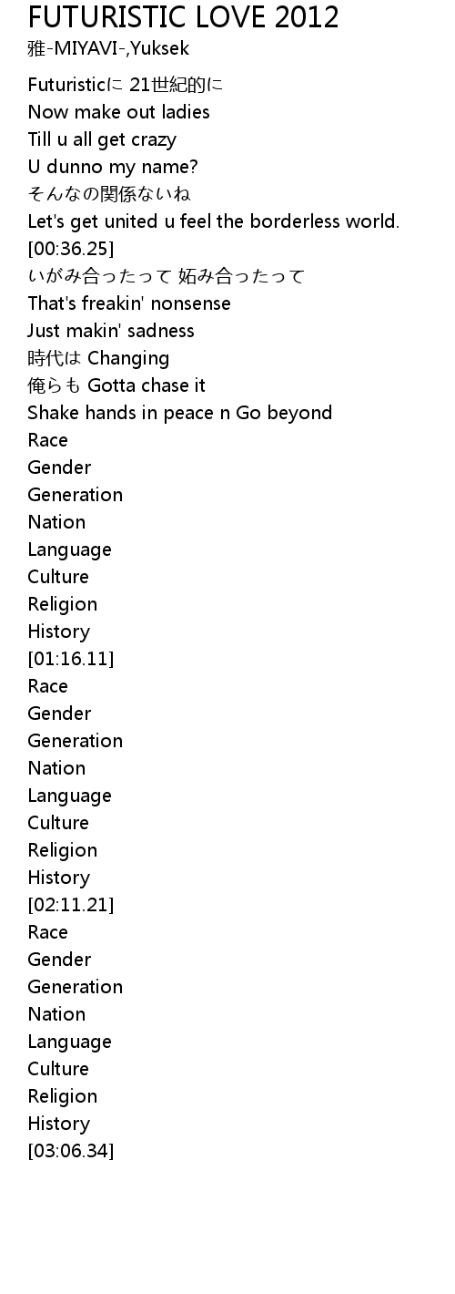 | [00:32.03] | Let's get united u feel the borderless world. |