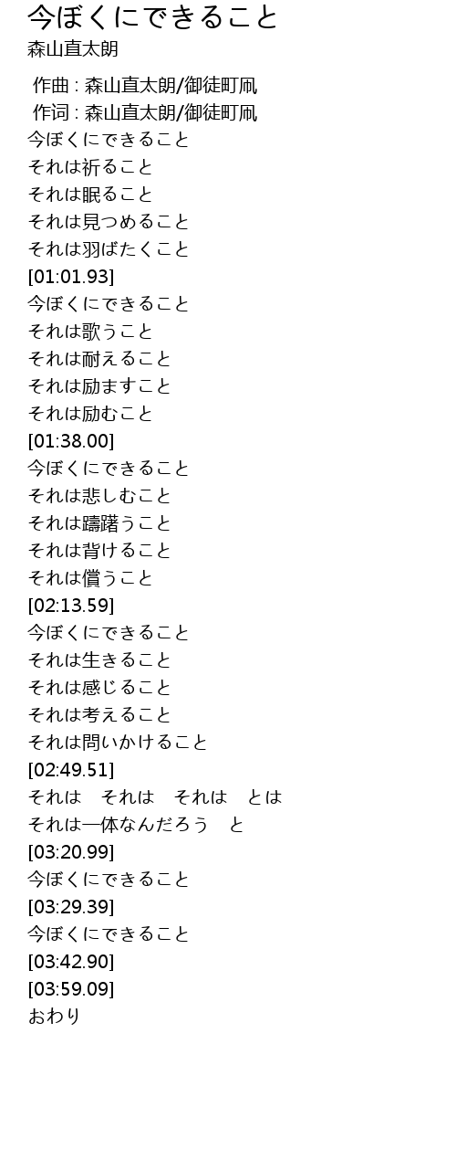 | [00:01.00] | 作词 : 森山直太朗/御徒町凧 |