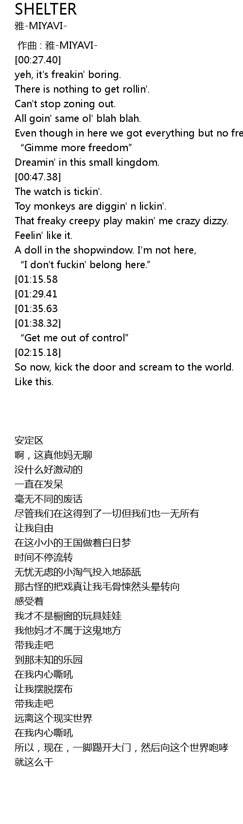 | [00:00.00] | 作曲 : 雅-MIYAVI- |