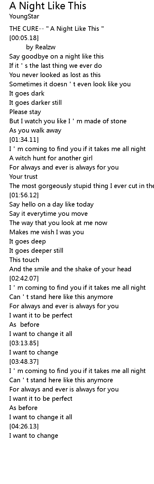 | [00:02.53] | THE CURE--"A Night Like This" |