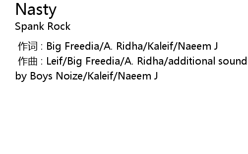 | [00:00.000] | zuò qǔ : Leif Big Freedia A. Ridha additional sounds and production by Boys Noize Kaleif Naeem J |