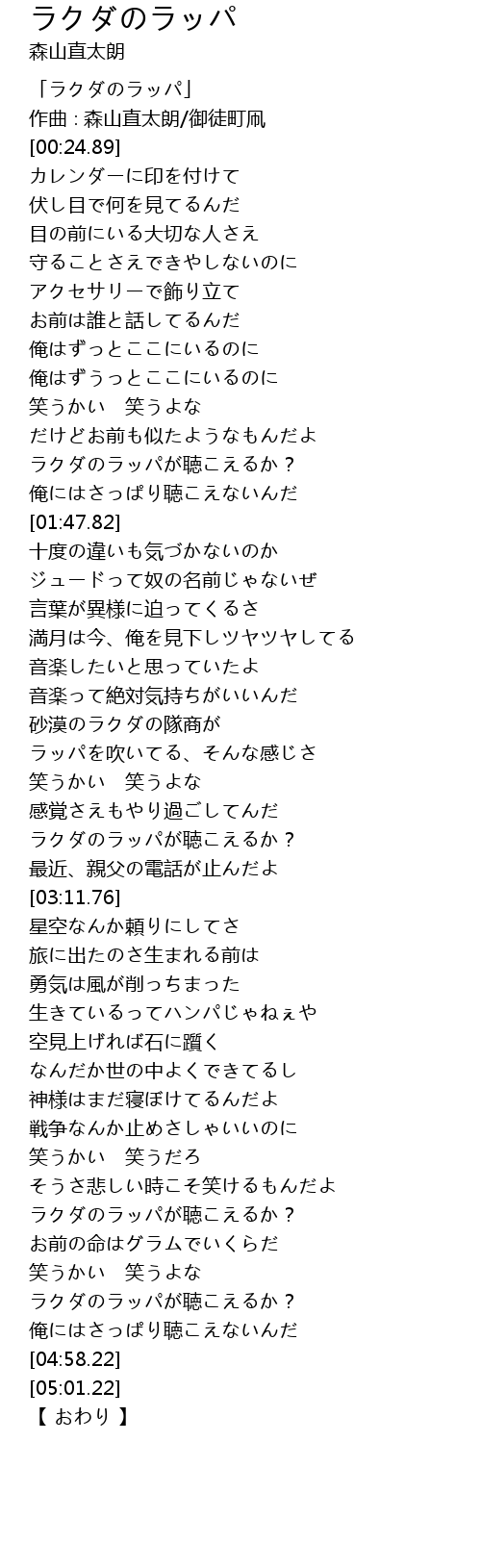 | [04:21.43] | ラクダのラッパが聴こえるか? |