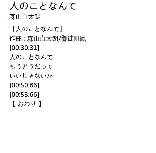 | [00:11.31] | 作曲∶森山直太朗/御徒町凧 |