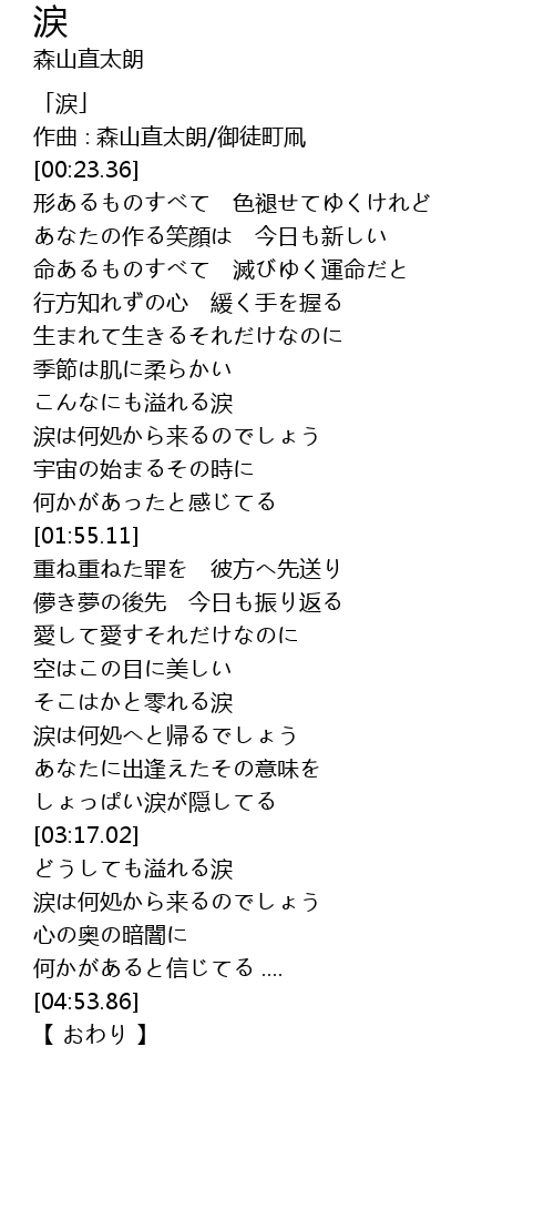 | [04:15.14] | 涙は何処から来るのでしょう |