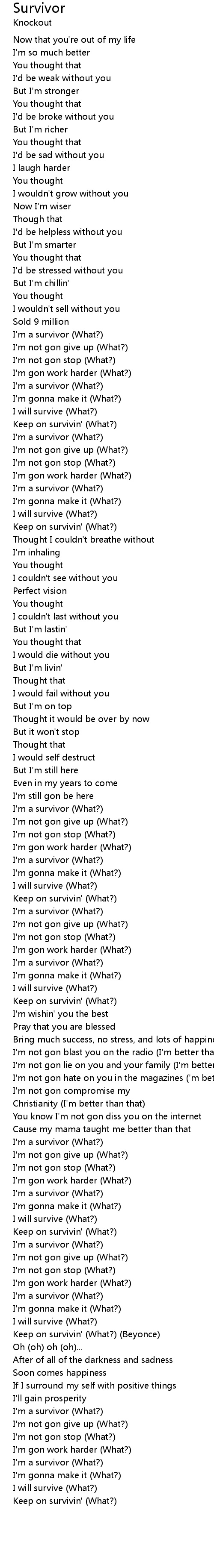 Keep on survivin' (What?) (Beyonce) |