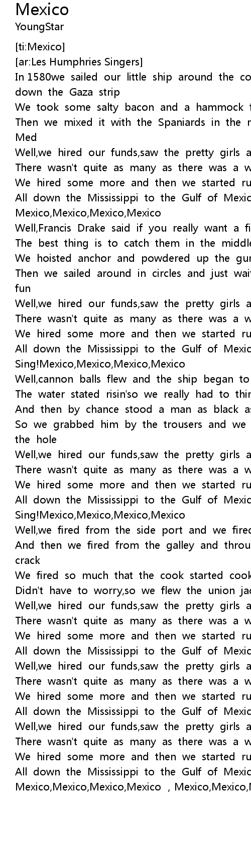 | [03:15.35] | Mexico,Mexico,Mexico,Mexico ,Mexico,Mexico,Mexico,Mexico |