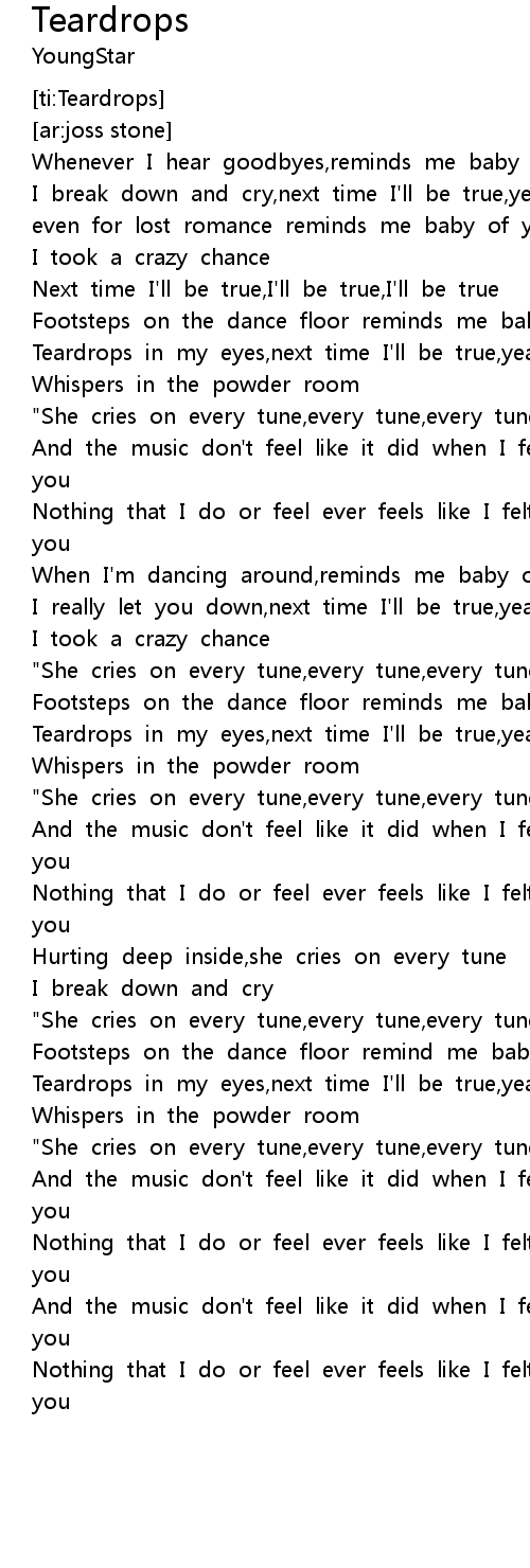 [02:25.368] "She cries on every tune,every tune,every tune"