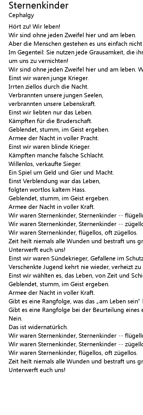 | Einst wir waren Sündekrieger, Gefallene im Schutz der Nacht. | |