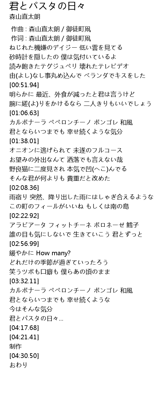 | [04:08.12] | 君とパスタの日々... |