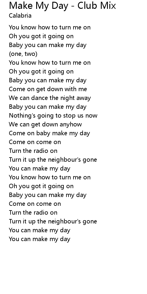 Come on baby make my day |