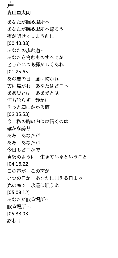 | [00:16.08] | あなたが眠る場所へ帰ろう |