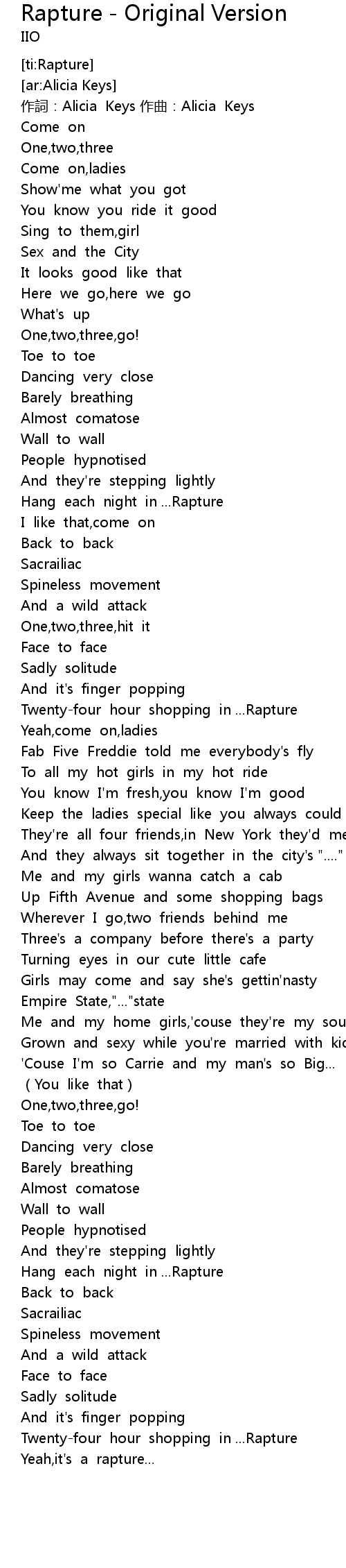 | [00:01.02] | 作詞:Alicia Keys 作曲:Alicia Keys |