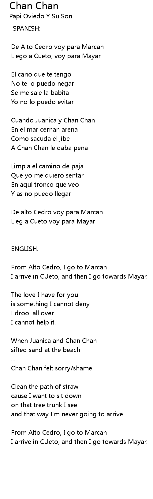 Chan Chan 歌词