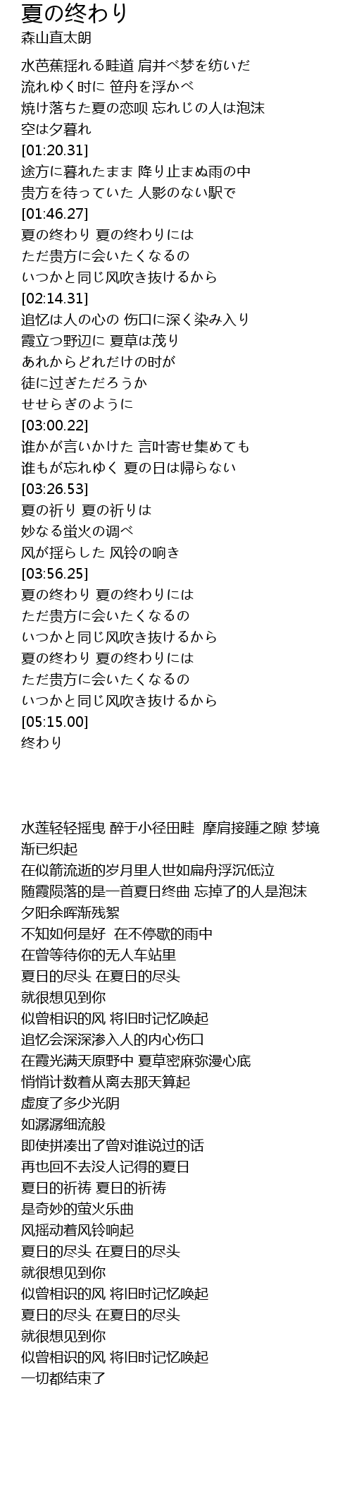 | [04:40.38] | 夏の终わり 夏の终わりには |