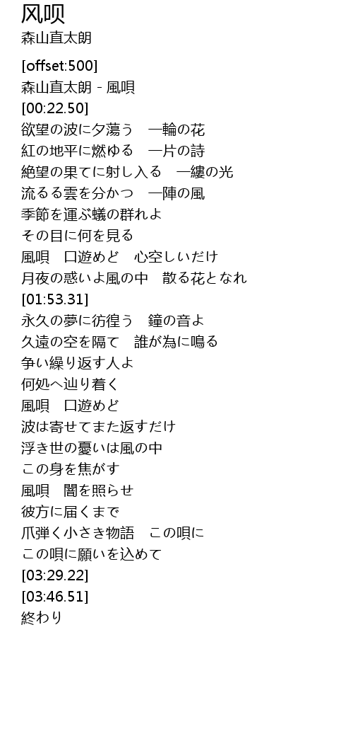 | [00:00.00] | 森山直太朗 - 風唄 |