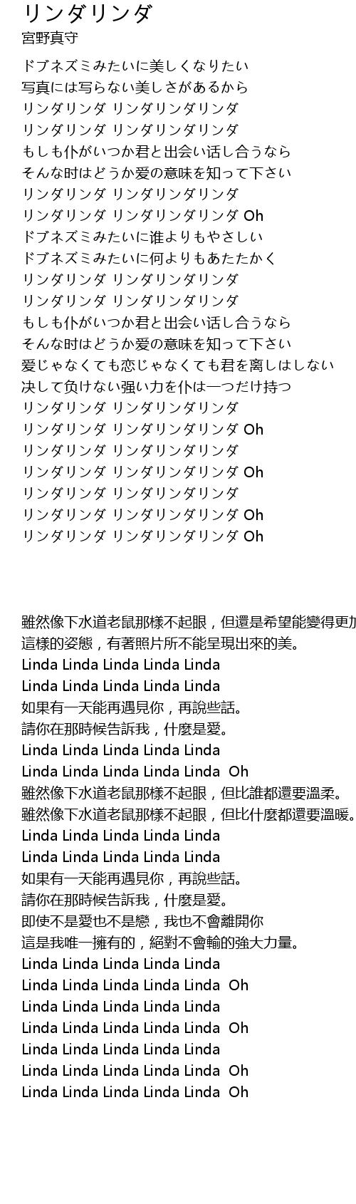| [02:42.100] | Linda Linda Linda Linda Linda |