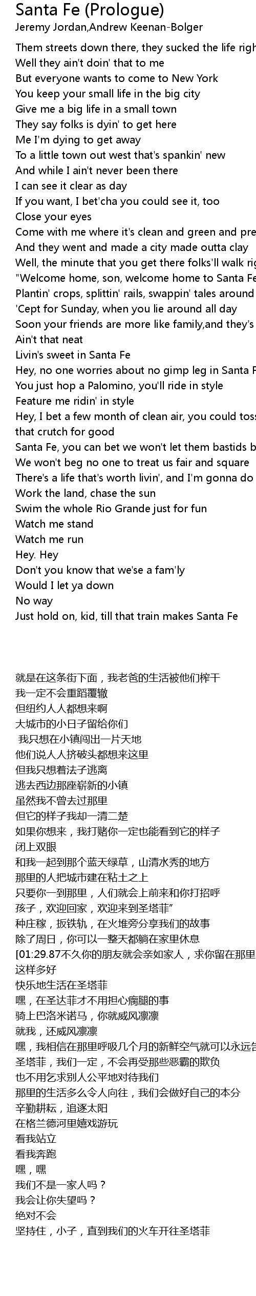 | [01:38.50] | 快乐地生活在圣塔菲 |