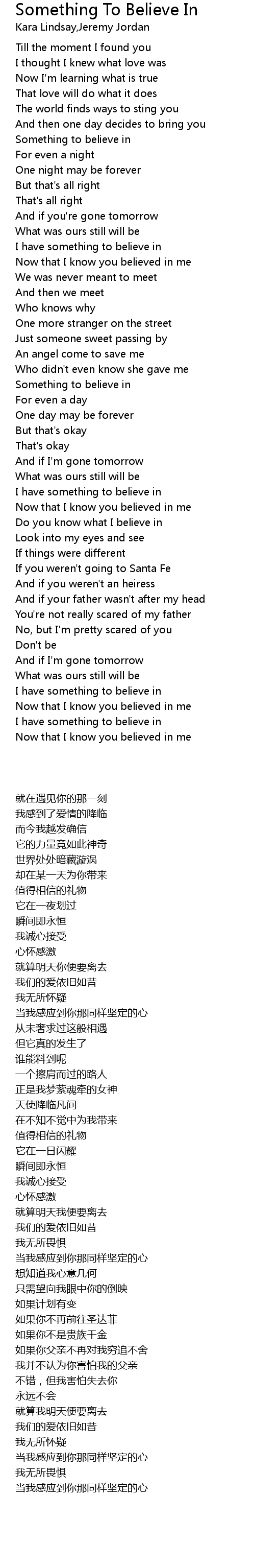 歌曲 Something To Believe In