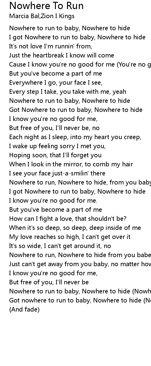 I got Nowhere to run to baby, Nowhere to hide