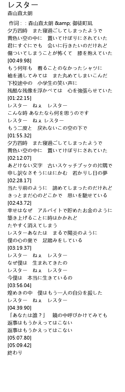 | [03:04.14] | レスターあなたは まるで陽炎のように |