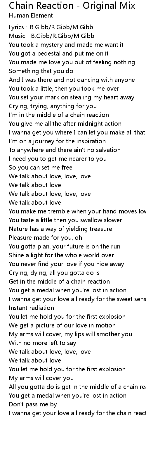 | I wanna get your love all ready for the chain reaction ... |