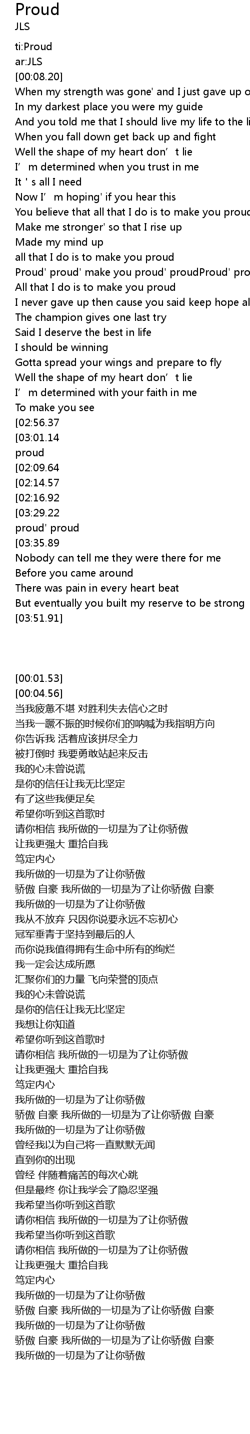 | [01:12.28] | Proud' proud' make you proud' proudProud' proud' make you proud' proud |