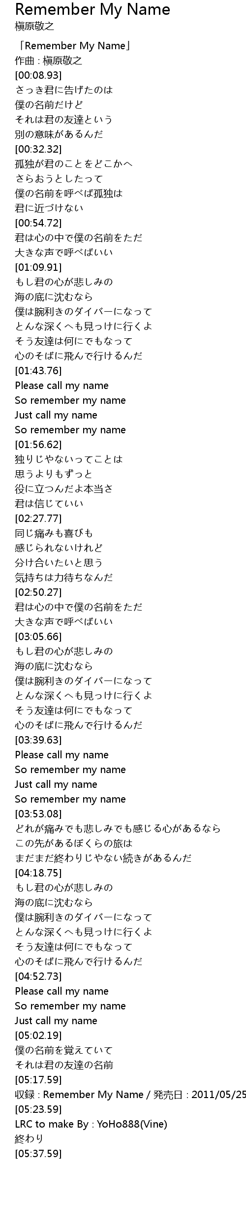 | [05:05.03] | 僕の名前を覚えていて |