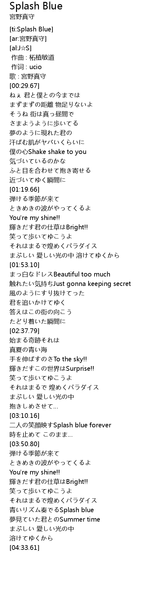 | [04:17.63] | 青いリズム奏でるSplash blue |
