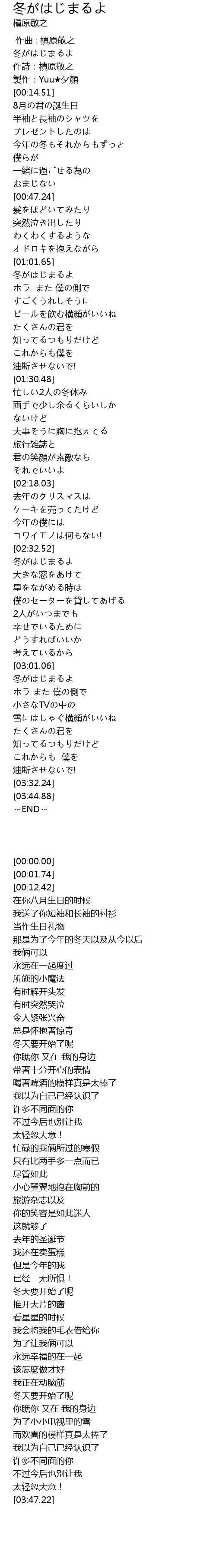 | [00:00.00] | 冬がはじまるよ |