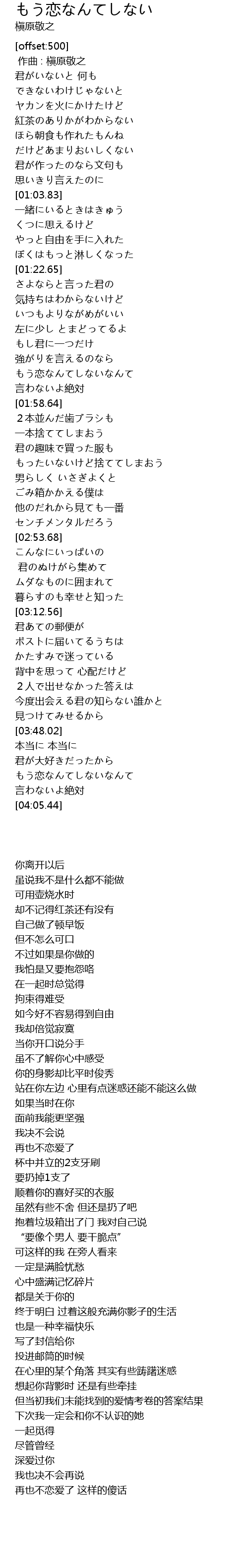 | [03:58.26] | もう恋なんてしないなんて |