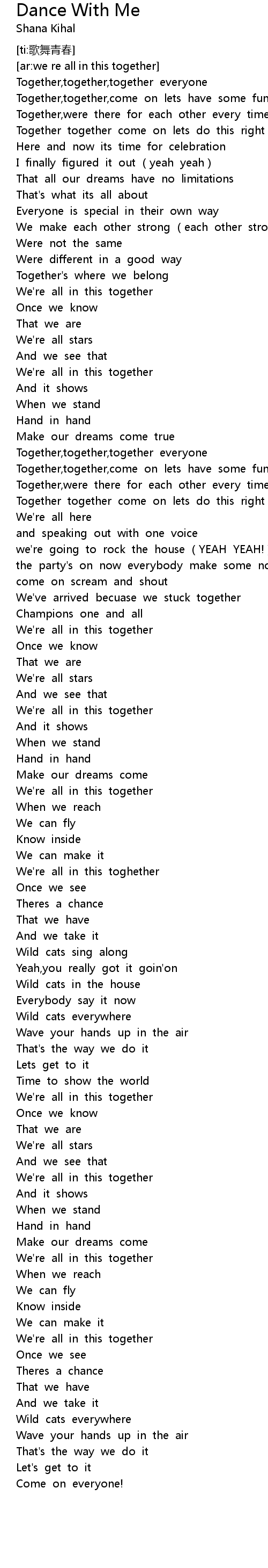 | [01:20.540] | Together,together,together everyone |