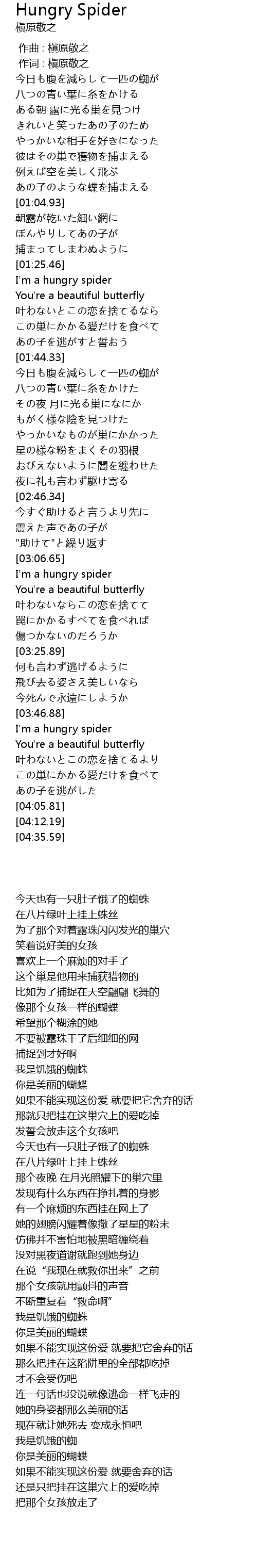 | [01:26.64] | 我是饥饿的蜘蛛 |