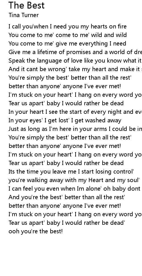 You're simply the best' better than all the rest' |