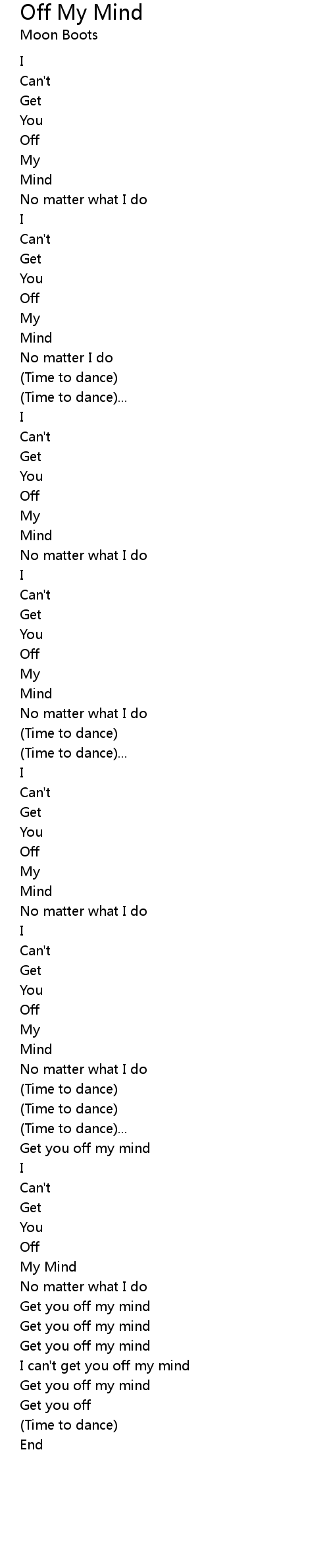 | Get you off my mind | |