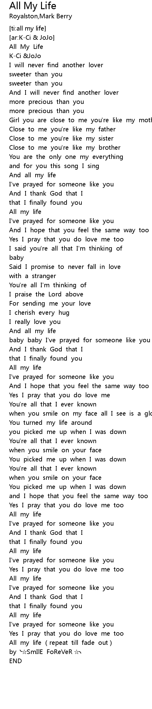 | [05:03.249] | All my life (repeat till fade out) |